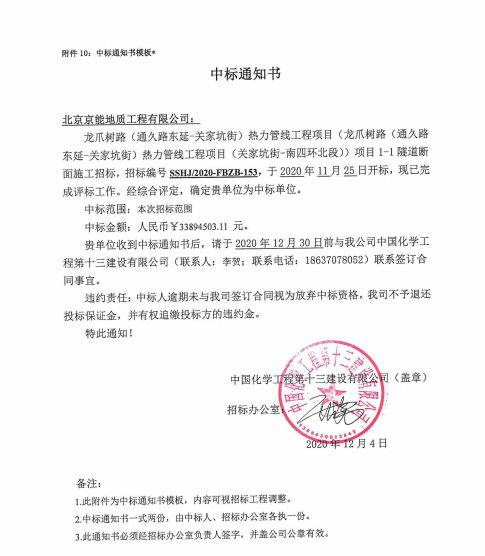近日,京能地質(zhì)工程公司中標(biāo)由中國(guó)化學(xué)工程第十三建設(shè)有限公司承包的《龍爪樹(shù)路(通久路東延-關(guān)家坑街)熱力管線工程項(xiàng)目(龍爪樹(shù)路(通久路東延-關(guān)家坑街)熱力管線工程項(xiàng)目(關(guān)家坑街-南四環(huán)北段))項(xiàng)目1-1隧道斷面施工工程》的分包工程,并簽訂了專(zhuān)業(yè)分...