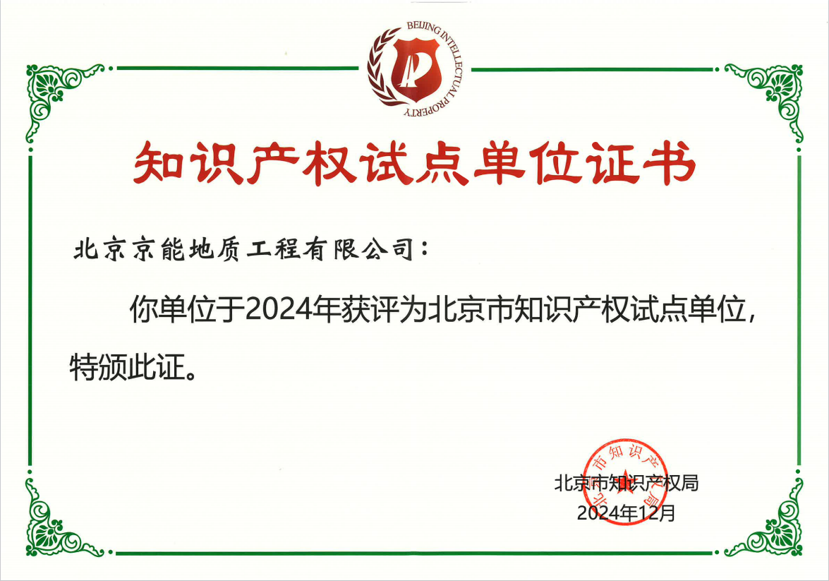 近日,北京市知識產權局公布2024年北京市知識產權試點單位名單,北京京能地質工程有限公司憑借在知識產權創(chuàng)造、運用、保護和管理等方面取得的優(yōu)異成績,被認定為“北京市知識產權試點單位”。