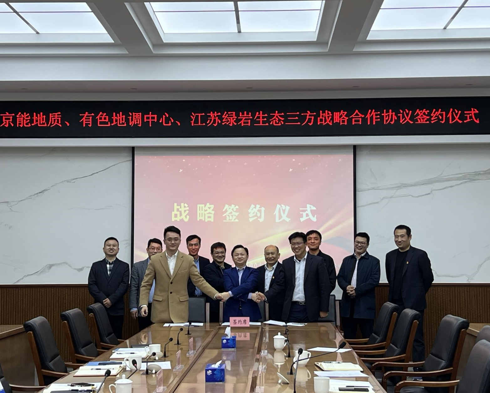最后,在楊自安書記、王文考書記等領導和與會人員的共同見證下,有色地調中心張建國副書記與京能地質蔡冠軍副總、江蘇綠巖沈奕鋒副總共同簽署了三方戰略合作協議。這標志著三方成為戰略合作伙伴、構建新發展格局的開啟。