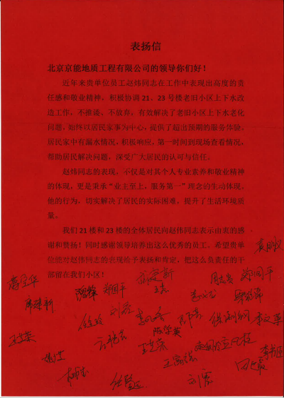 社區居民送錦旗致謝 京能地質物業人十年堅守獲點贊