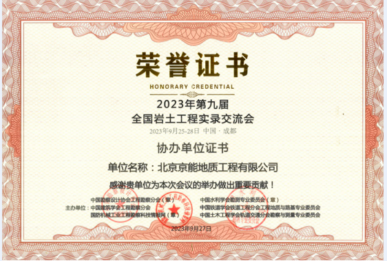 2023年9月26至27日,北京京能地質(zhì)工程有限公司協(xié)辦的全國第九屆巖土工程實錄交流會在成都舉行。來自全國各地高校、企業(yè)的500余名專家學者及工程技術(shù)人員參加大會。